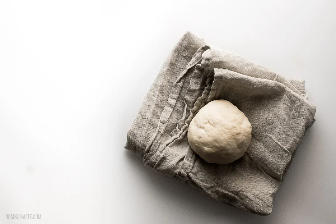 In a bowl add the flour, oil, water and salt. Starting gently combine everything. Once incorporated assert gentle pressure and make into a dough ball. Set the dough aside to rest.